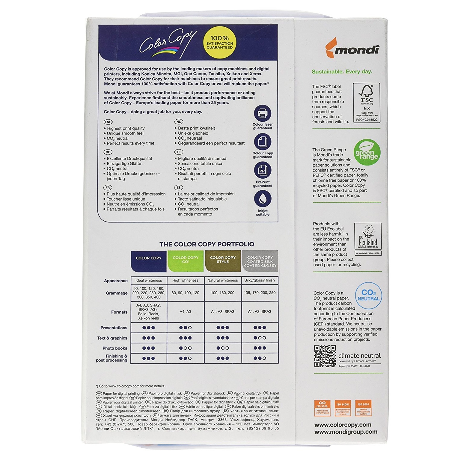 Color Copy - la carta leader che garantisce stampe di alta qualità e una riproduzione brillante dei colori con la stampa digitale laser a colori. È particolarmente adatta per la stampa di documenti come: presentazioni, direct mailing, manuali, piani aziendali, biglietti da visita e buste.
