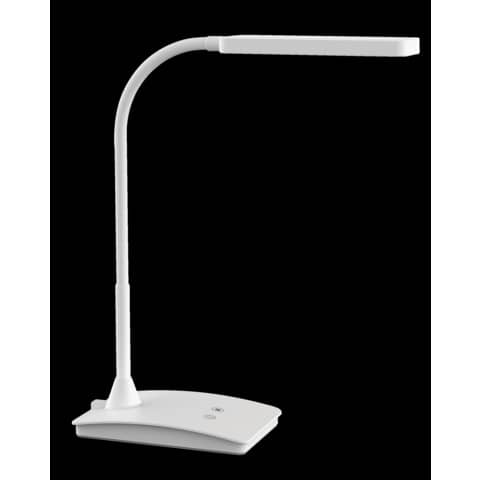 Lampada da tavolo, la più potente tra le compatte. Regolazione temperatura di colore e intensità di illuminazione su tre livelli, a seconda dell'ora del giorno oppure delle proprie esigenze. Buona illuminazione di un'area limitata con forte luce. Estremamente parsimoniosa: i LED consumano l'80% in meno rispetto ad una lampada a incandescenza. Poco ingombrante e maneggevole. Pratica: braccio robusto con sezione flessibile per la regolazione dell'angolo d'illuminazione. Concetto di sicurezza tecnica Made by MAUL. . Con 24 LED: 8 a luce calda (3.000 kelvin) e 16 a luce diurna (6.500 kelvin). Questo dispositivo è munito di lampade LED integrate, non sostituibili. Durata del LED 20.000 ore. Classe di consumo energetico "A" (fascia di classe energetica A++ a E). Consumo energetico estremamente basso di ca. 6 watt. Consumo annuo ponderato di energia: 6 kWh/1.000 ore. Luminosità 1.360 lux a 35 cm di distanza, 320 lumen. Braccio in metallo con superficie gommata, testa in materiale plastico. Lunghezza braccio 35,7 cm. Altezza in posizione normale di lavoro 36 cm. Dim. Testa 16 x 6 cm, inclinabile e ruotabile. Interruttore a sfioramento posizionato sulla base, comodo da azionare. Base stabile, 16,5 x 10,6 cm, in materiale plastico, con zavorra interna e superficie inferiore antigraffio. Confezione sicura, a basso impatto ambientale, riciclabile.