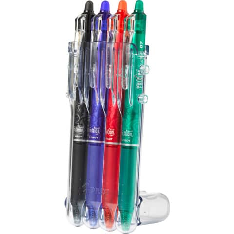 Penne a sfera cancellabili Pilot Frixion Ball Clicker 0,7 mm – 006822 (conf.4 pezzi: Nero, Blu, Rosso e Verde)