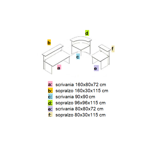 • n. 1 scrivania reception da 80x80x72cm con relativo sopralzo da 80x30x115 cm.