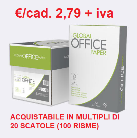 Risme carta fotocopie A4 75gr/mq – 100 risme (20 scatole) – IN OFFERTA